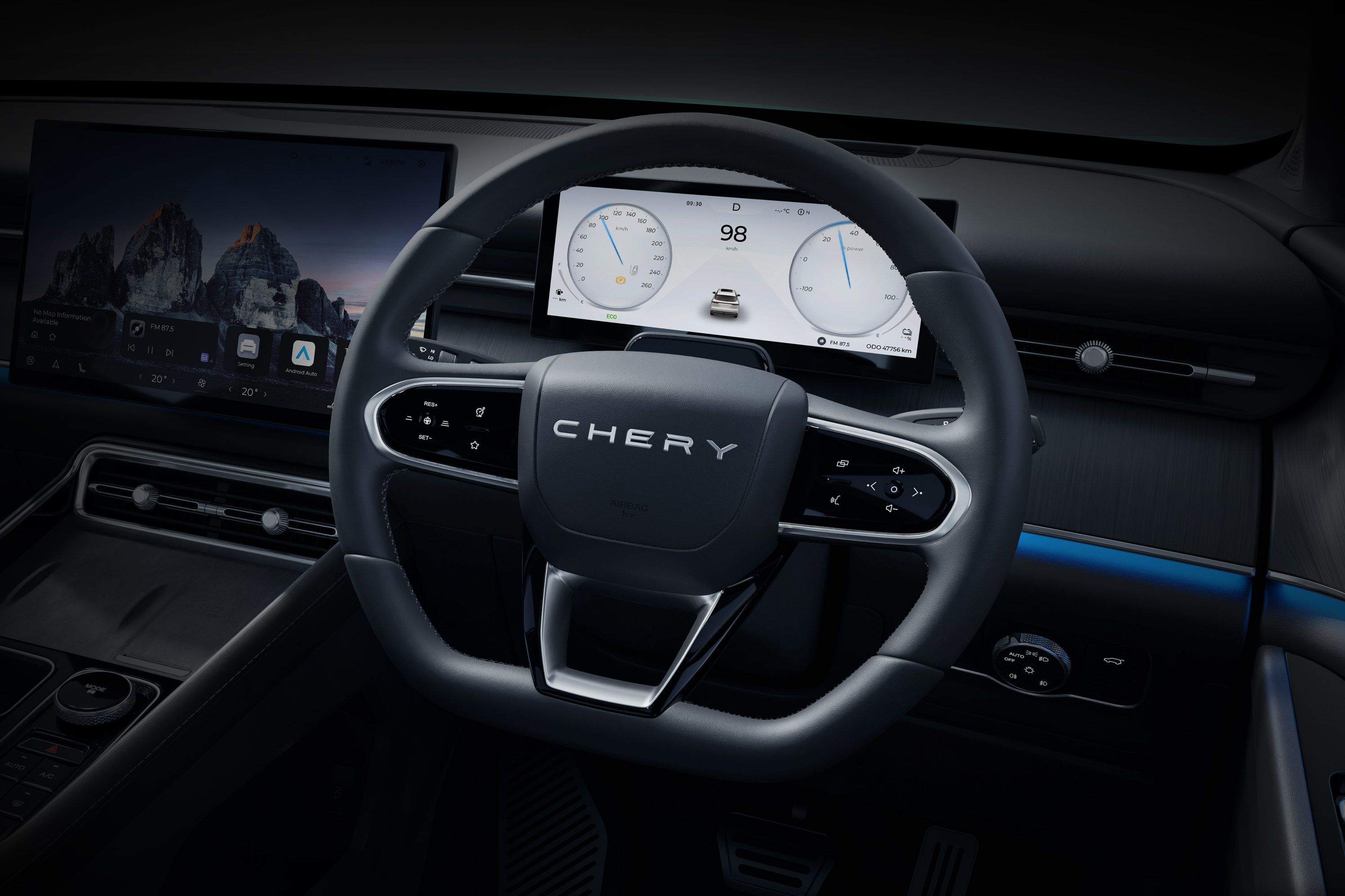 Intelligent Voice Assistant pada Chery Tiggo 9 CSH memungkinkan pengemudi mengontrol berbagai fitur mobil hanya dengan perintah suara, sehingga lebih praktis, modern, dan tetap fokus saat berkendara. Ukuran layar super besar dengan tampilan HD yang terintegrasi dengan berbagai informasi berkendara dan menambah tampilan futuristik
