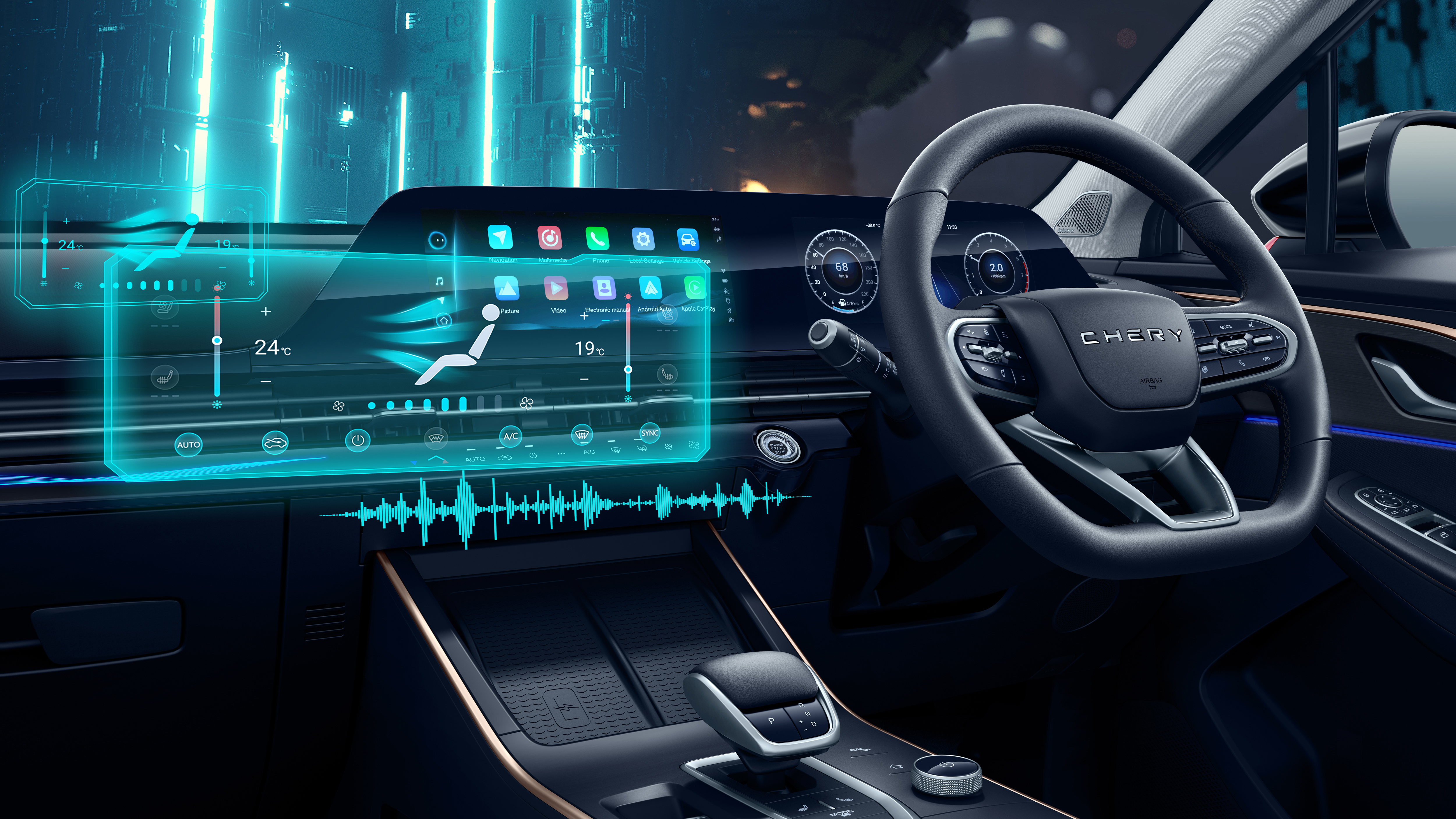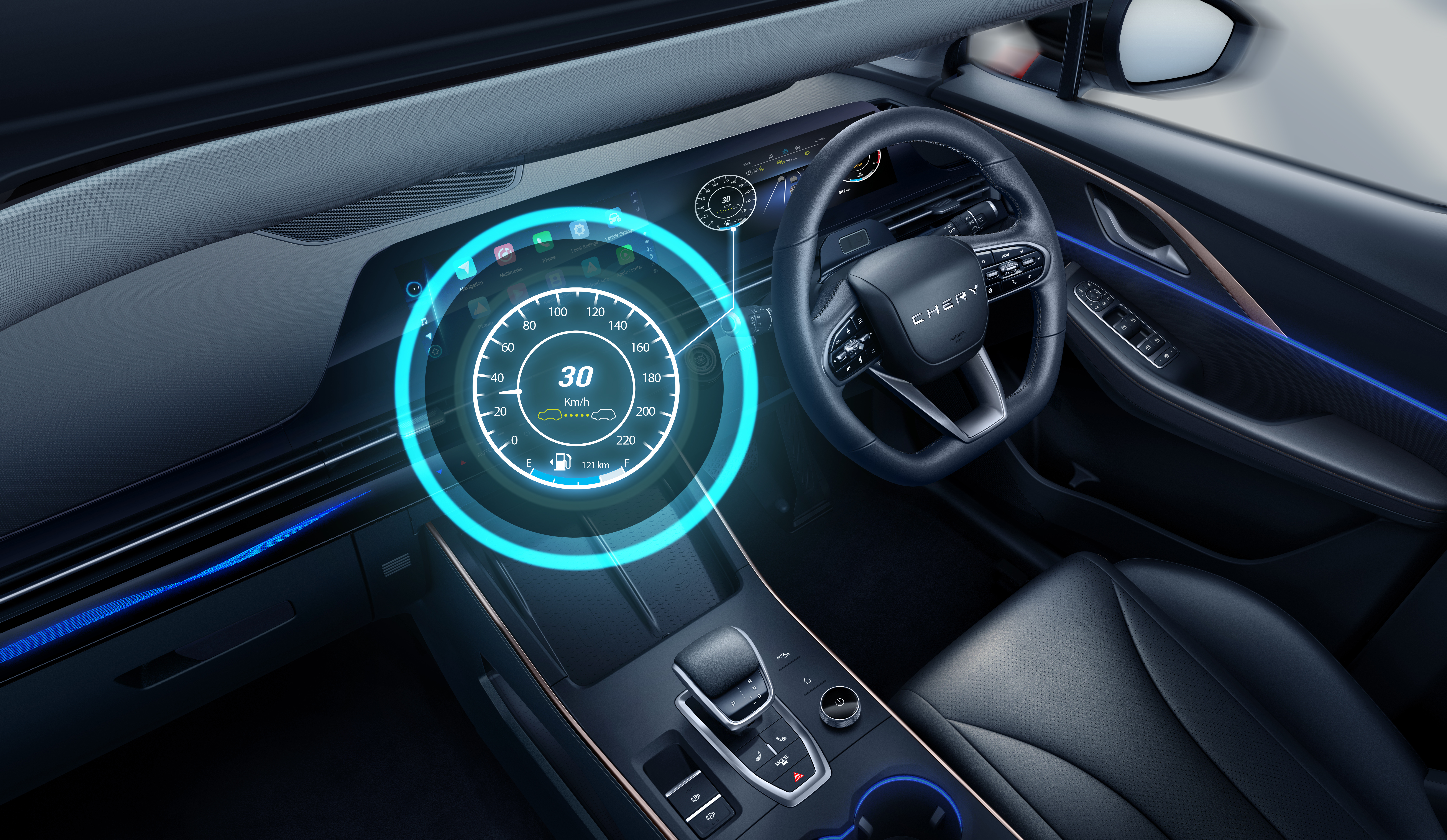 Intelligent Voice Assistant pada Chery TIGGO CROSS CSH memungkinkan pengemudi mengontrol berbagai fitur mobil hanya dengan perintah suara, sehingga lebih praktis, modern, dan tetap fokus saat berkendara. Ukuran layar super besar dengan tampilan HD yang terintegrasi dengan berbagai informasi berkendara dan menambah tampilan futuristik